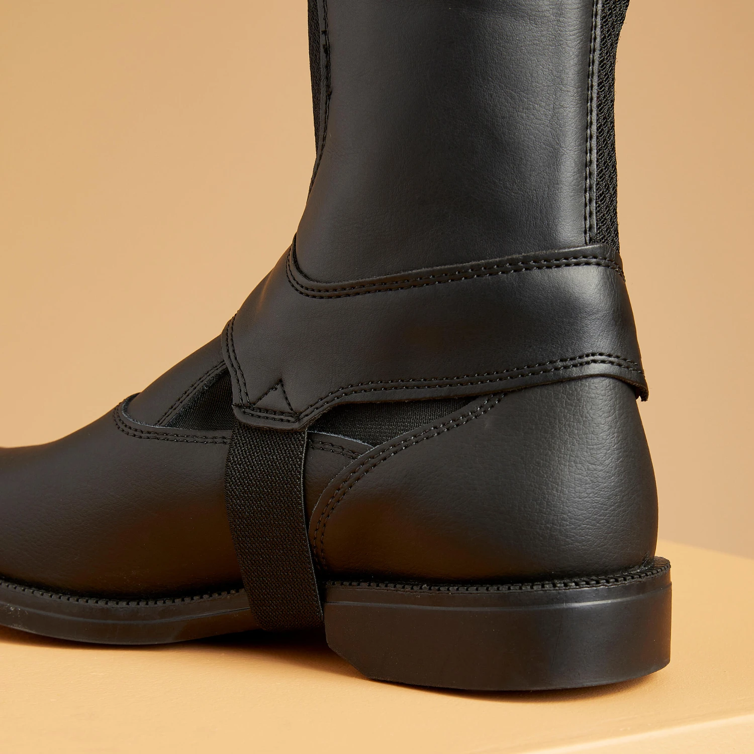 The mesh insert is made in a highly breathable, ventilated material for improved moisture management. Half chaps held in place by an elastic band running under the boot’s sole.