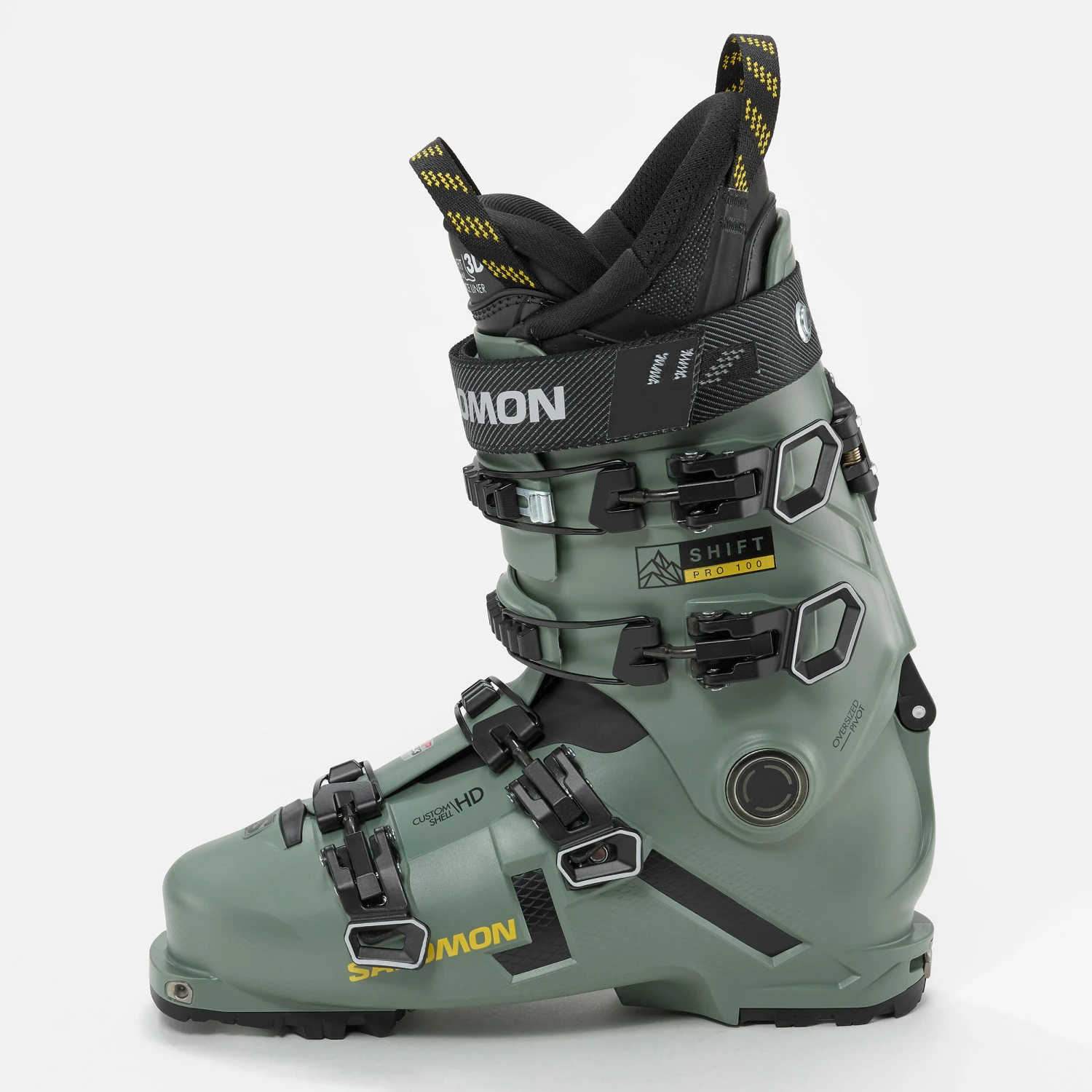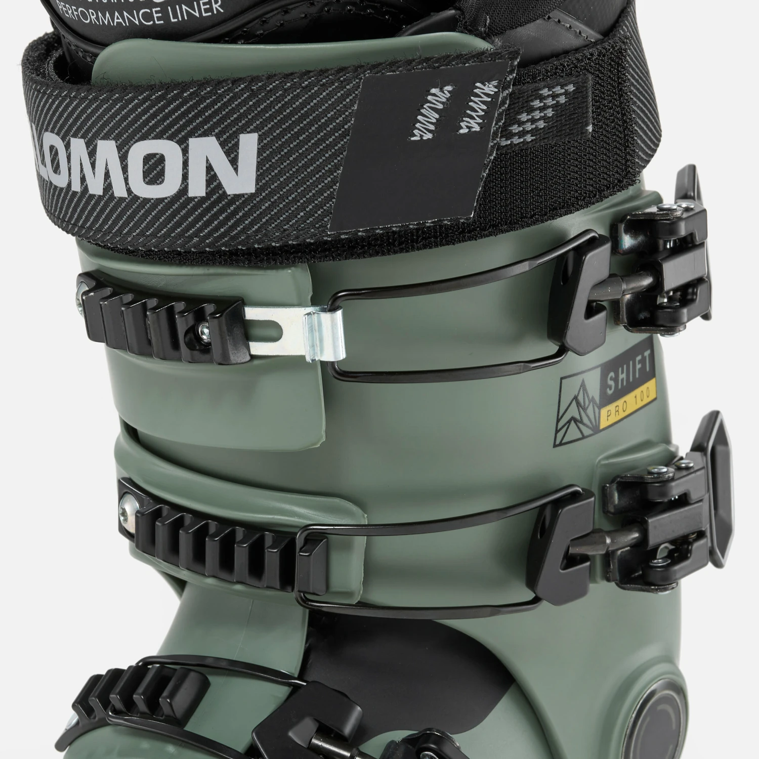 Designed for freeride skiing. Ideal boots to begin free touring thanks to the wide range of movement and inserts.The new alpine skiing boot SHIFT PRO 100 by SALOMON combines pleasure when climbing and performance on descent. A real free touring boot.