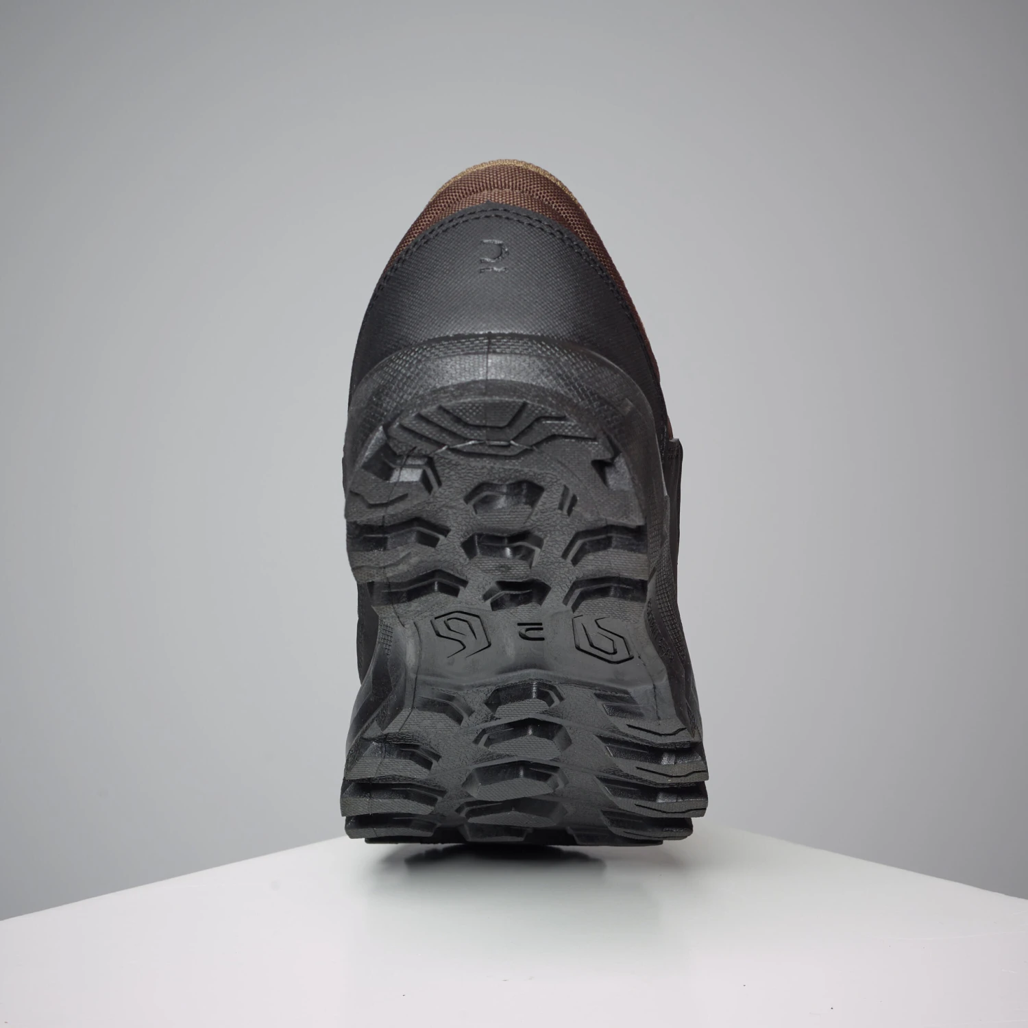 All of the boot’s components – an upper made of split leather, a polyurethane stone guard all around the shoe inspired by mountaineering footwear, a sole injection-moulded directly onto the upper – together form a robust and durable product designed for hunting in relatively even terrain with the occasional brambles, as well as for everyday outdoor work or forest walks.