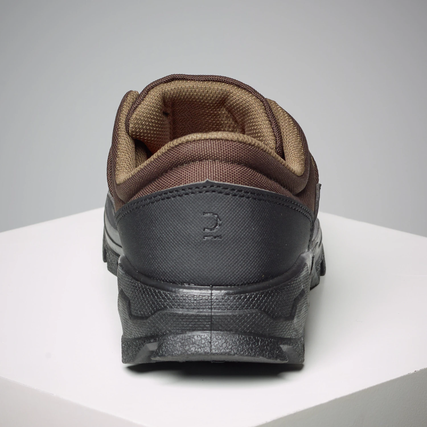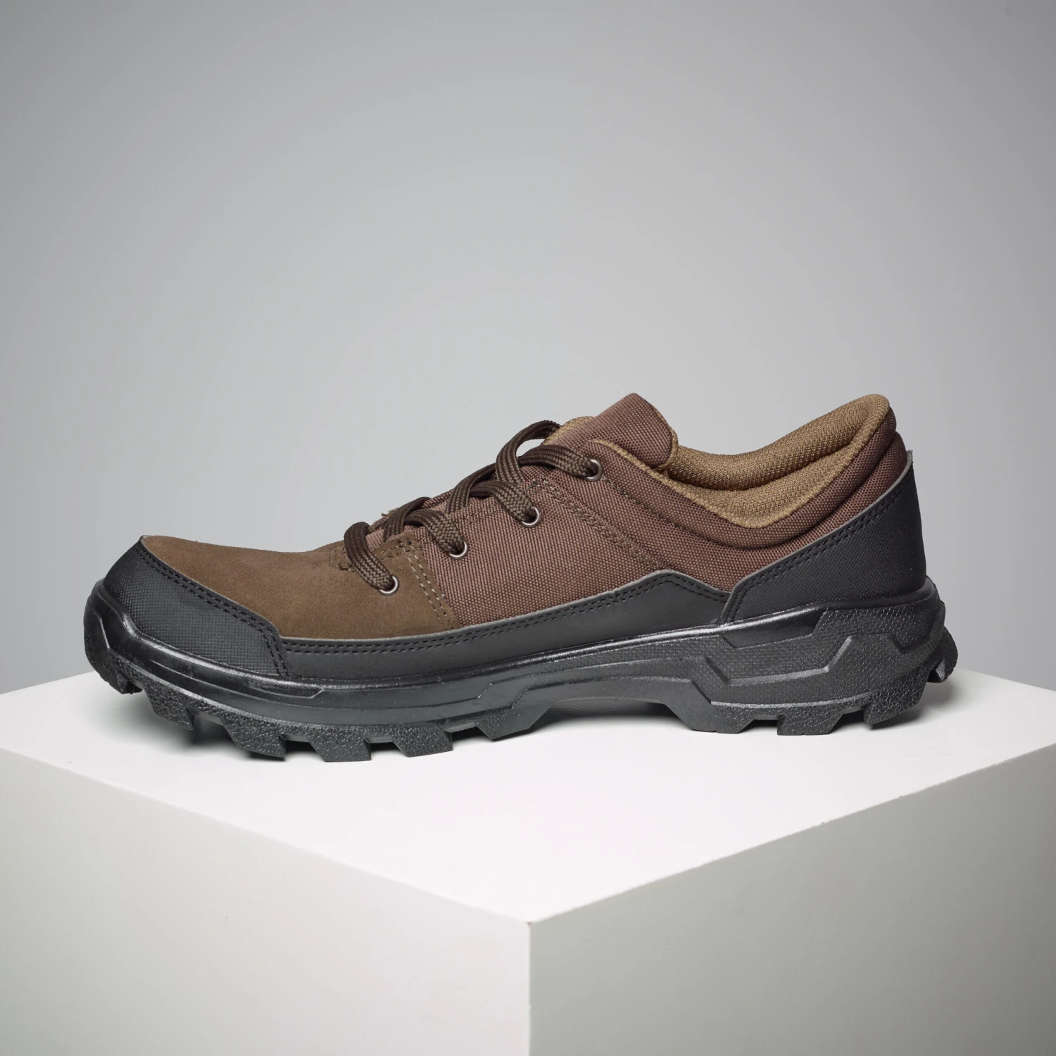 Non-waterproof shoes without shaft designed for all hunting, shooting and outdoor activitiesWith its upper partly made of split leather, its EVA insert and sole, and the reinforcement surrounding your foot, they enable you to very comfortably hunt, work and roam in woodland in dry weather.