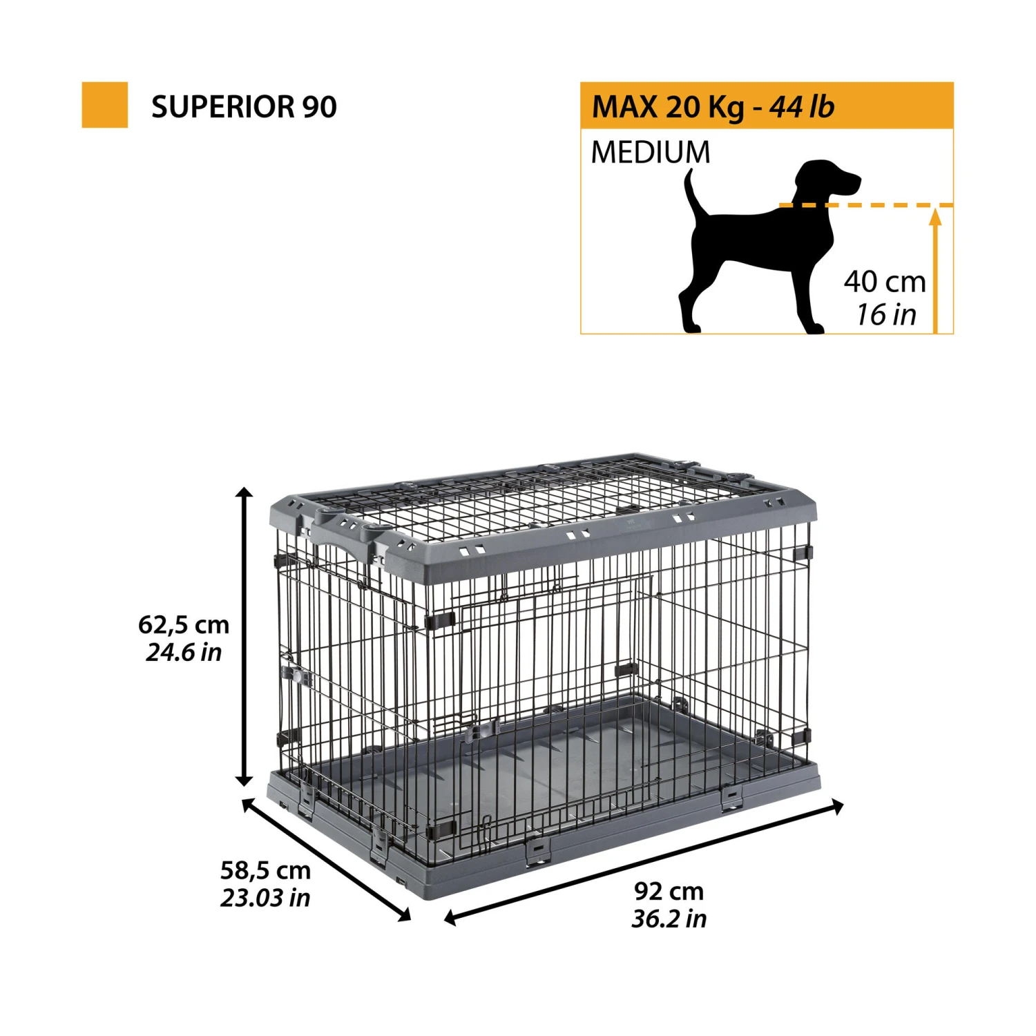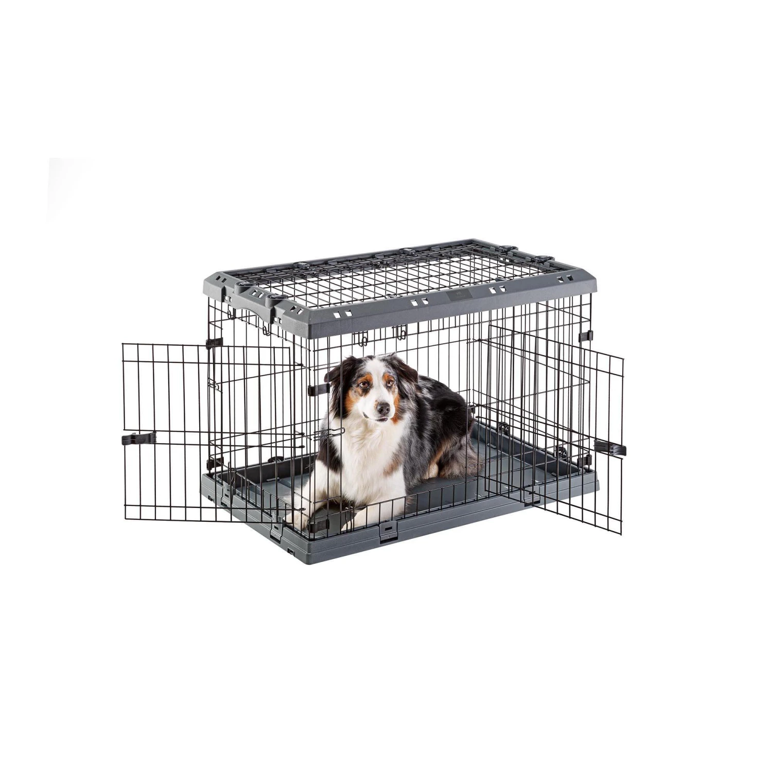 Reinforced security: Double lock to prevent the animal from escaping.Practical and user-friendly: Sturdy plastic base, ideal for all breeds of dog and very easy to maintain. Stable and silent.Sturdy and high quality: Sturdy plastic frame and plastic-coated wire mesh ensures maximum safety for the dog and durability of the product.