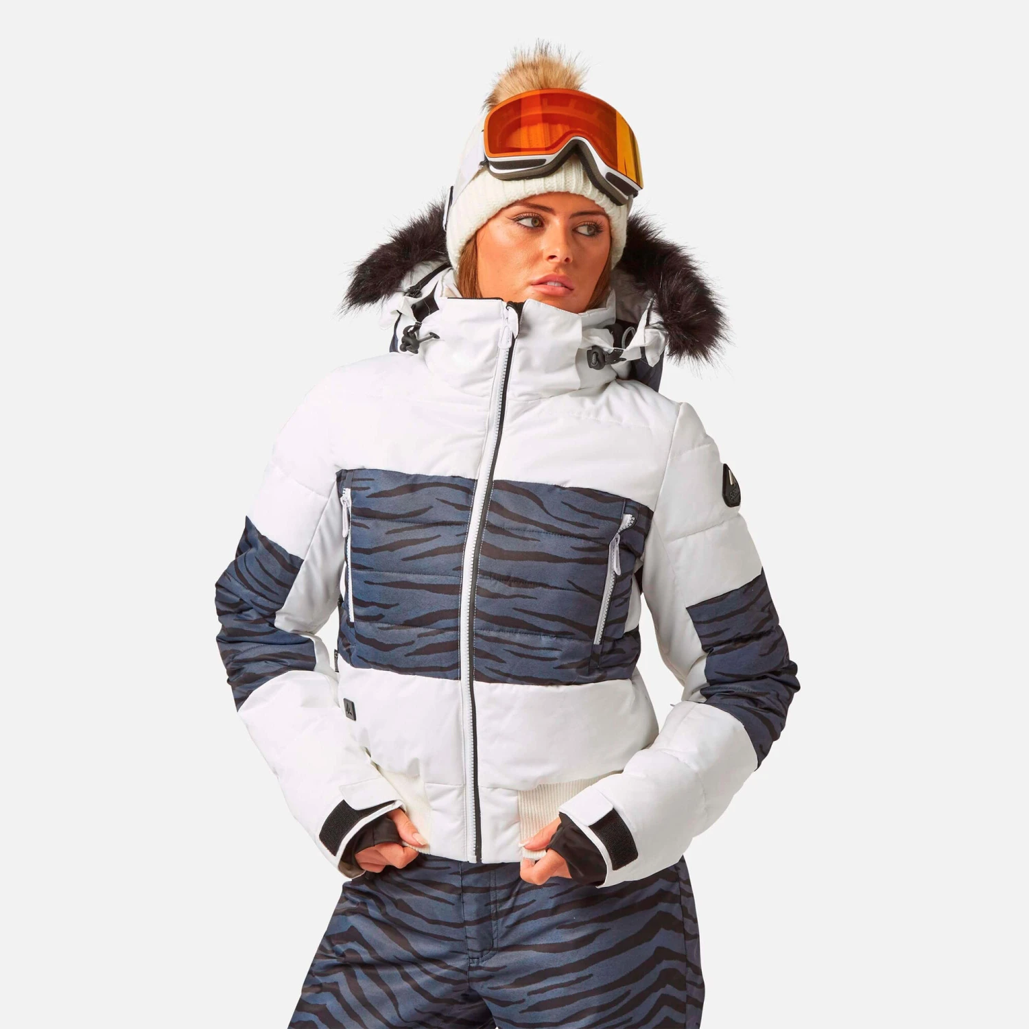 Zipped pockets – Pockets designed for everything plus a few more just in case. Pockets for goggles, lift pass, media, stash pocket for cash, wallet pocket and inside phone pocket for protection and to keep the battery warm and dry. Plus a detachable goggle wipe for those days when visibility is at a premium.