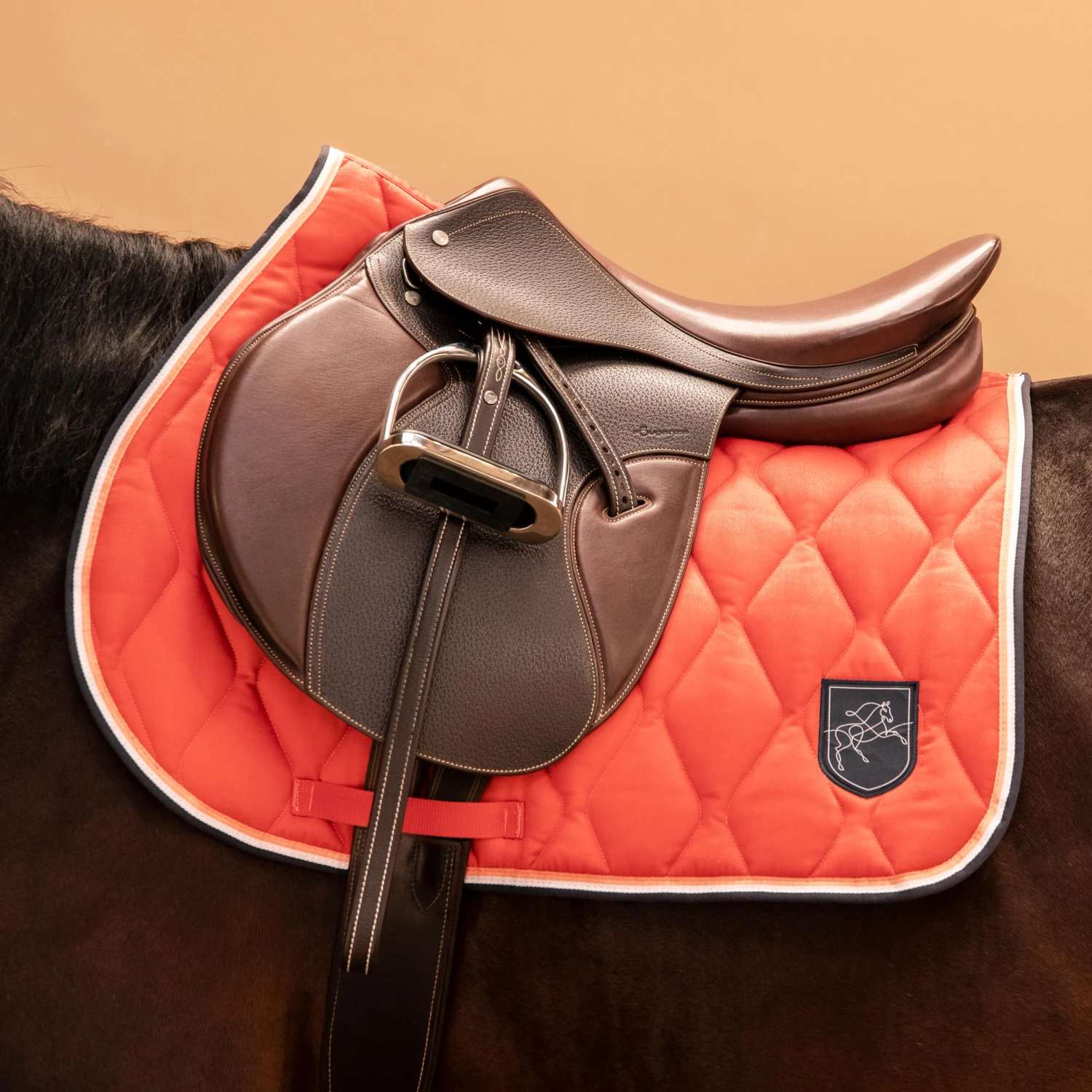 Our equestrian designers developed this saddle cloth for absorbing perspiration from your horse.Our 500 saddle cloth is spongy and thick to give your horse maximum comfort! We’ve adjusted the shape of the back to keep it clear of the withers.
