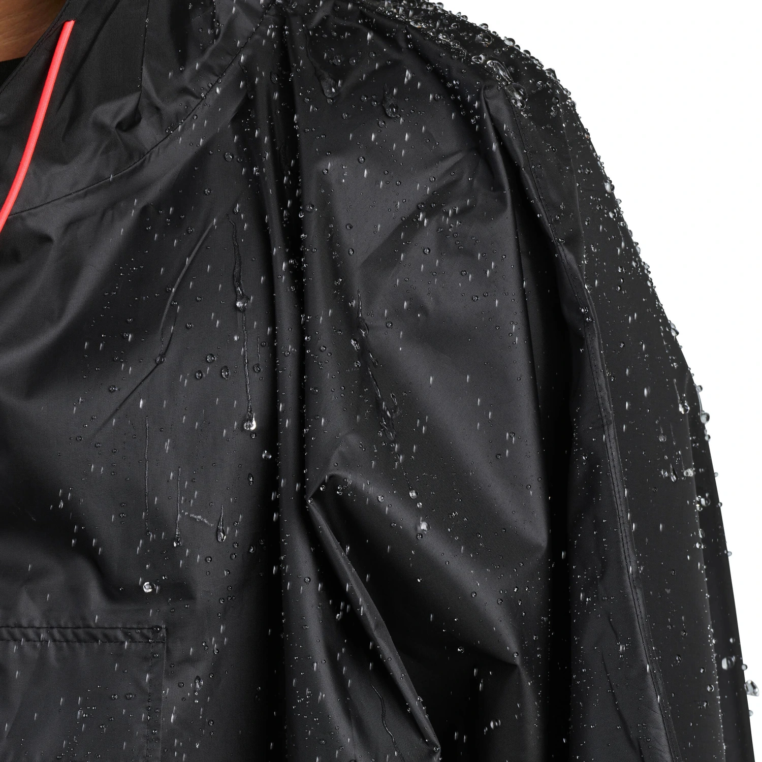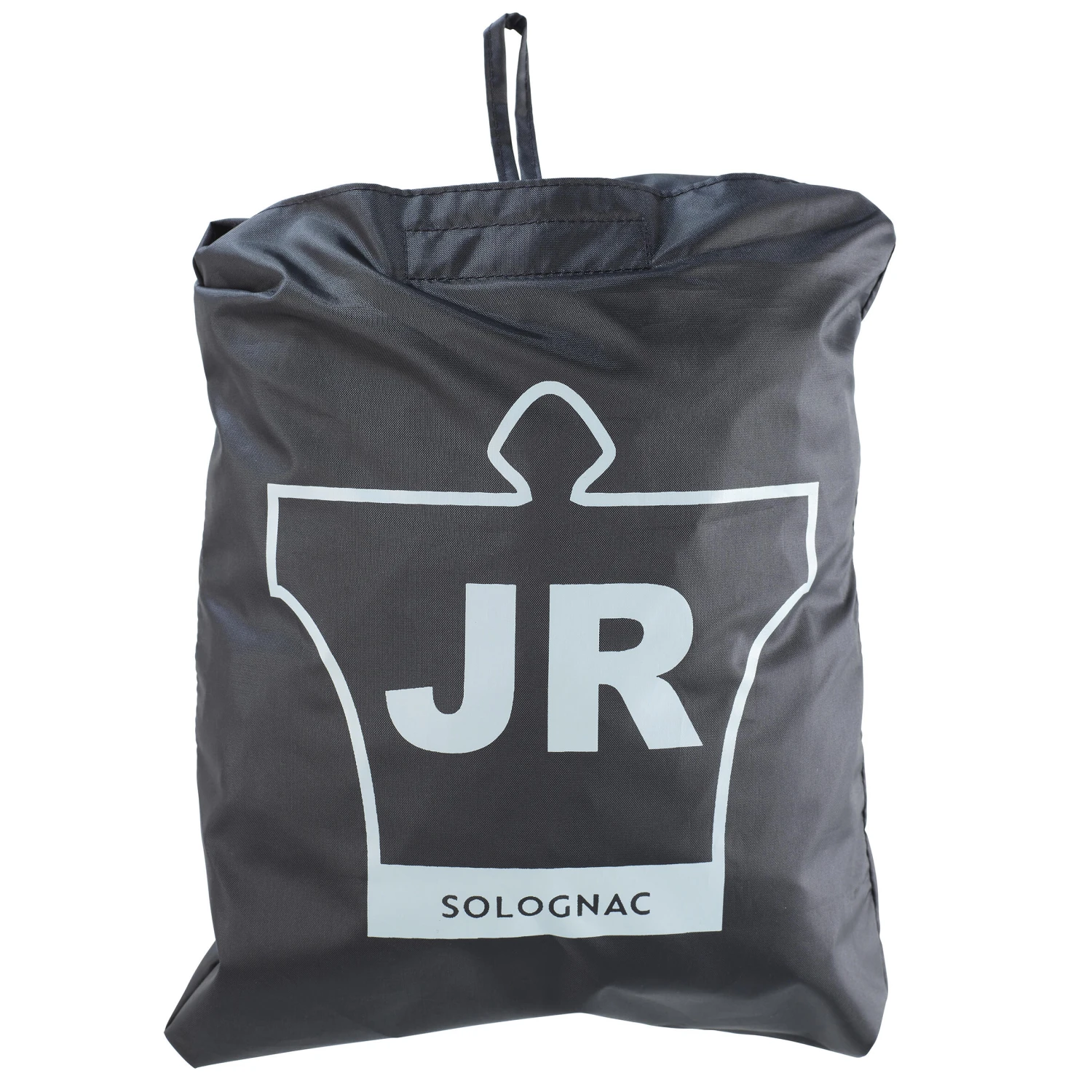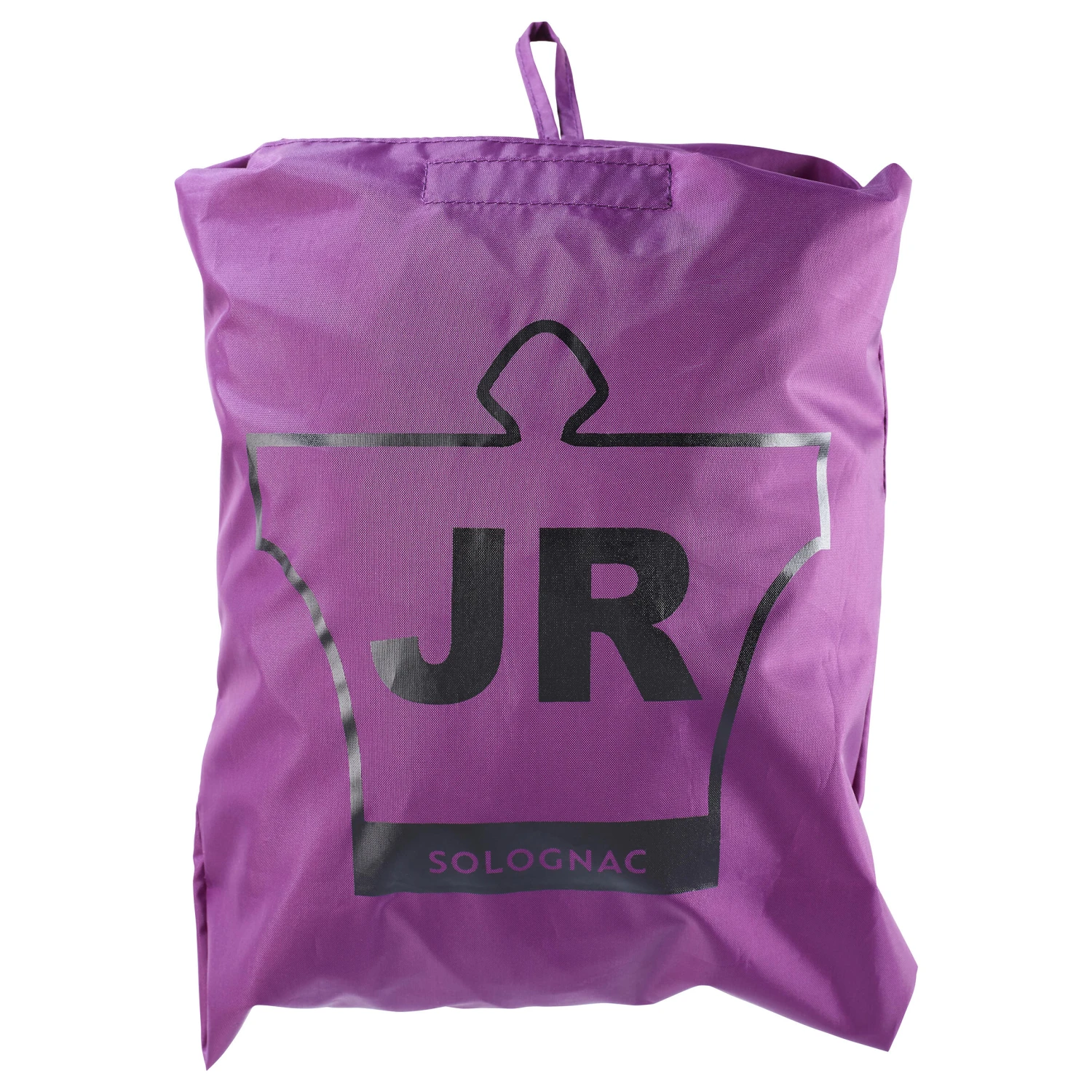 Thanks to its loose-fitting design, this poncho can be worn over a jacket or a jumper, as well as over a small (20 litres) backpack. It will cover your kids from their head to upper legs, and the drawstrings make it easy to adjust the hood. When the rain stops, you just need to store this poncho in its own front pocket. Here are the pocket dimensions: 23.5 cm x 20 cm