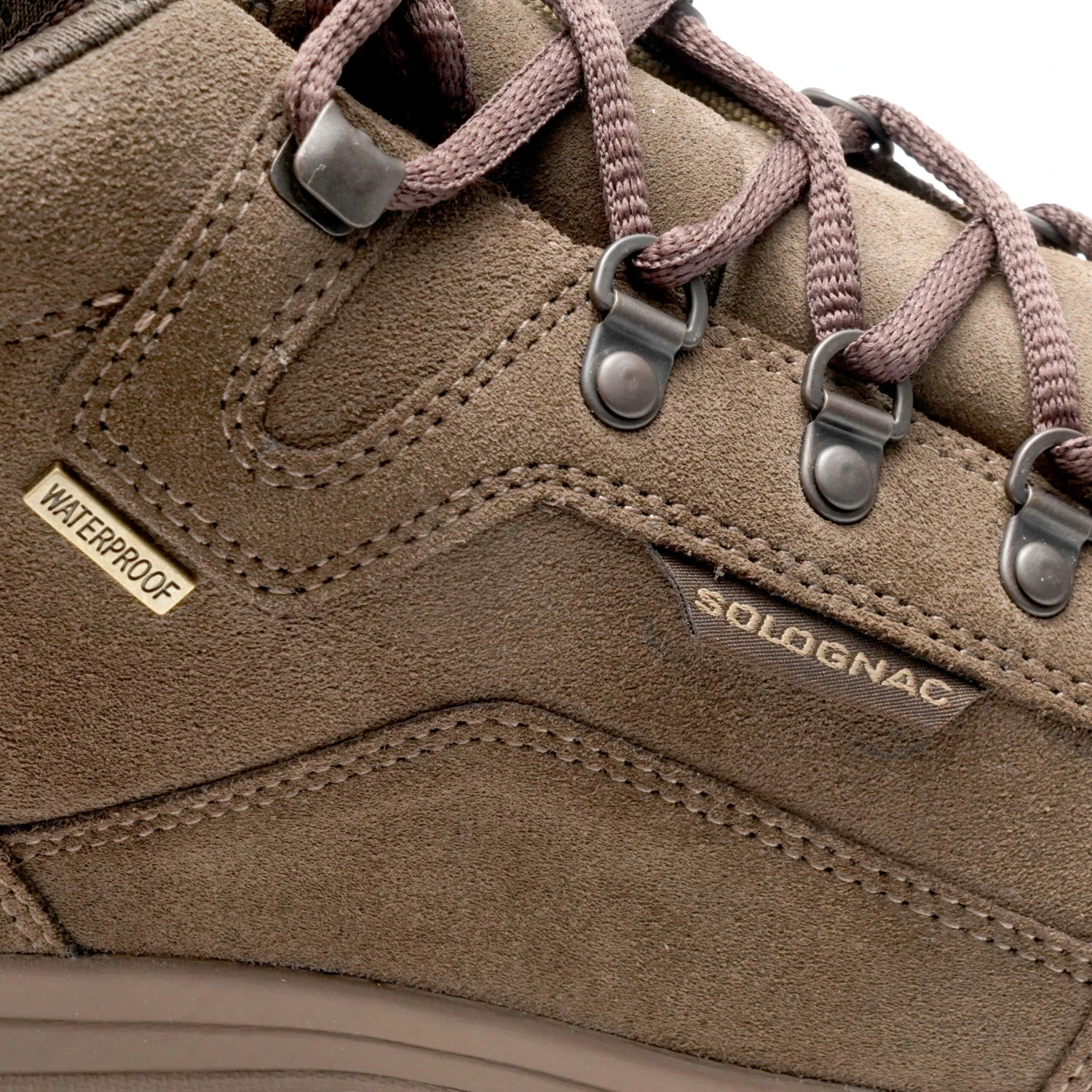 Shoes designed to withstand occasional to regular use in lowlands on relatively even terrain, in the presence of some brambles. The split leather and seams are tested in the lab and out in the field for resistance to abrasion, tearing and scuffing. The lace eyelets and hooks are made of metal. 100% rubber sole provides excellent long-term resistance to wear.
