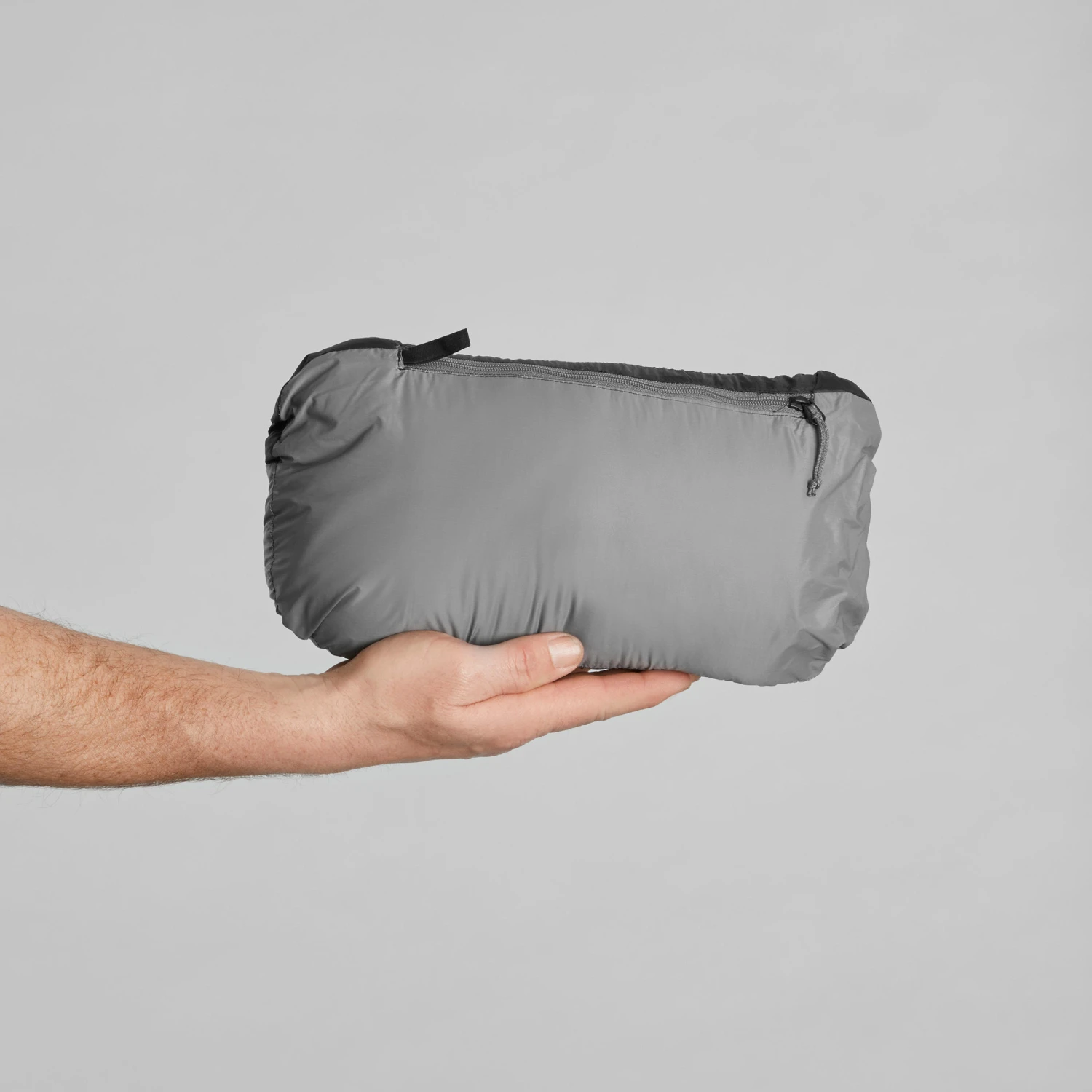 The wadding is made from silicone-coated spiral fibres that make it highly compressible and highly durable. Despite its low thickness, it has high insulation properties thanks to the air trapped inside, and remains lightweight. It retains its warmth even when wet.