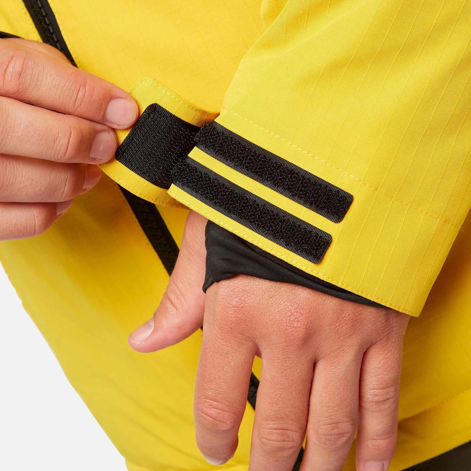 The fixed hood has a 3-way volume adjuster for increased all-around visibility when you are flying down the mountain requiring the added protection of having your hood up as the weather offers you a challenging day. It also has a chunky durable waterproof main zipper with a reinforced internal storm flap, plus a large deep chest pocket for easy access.