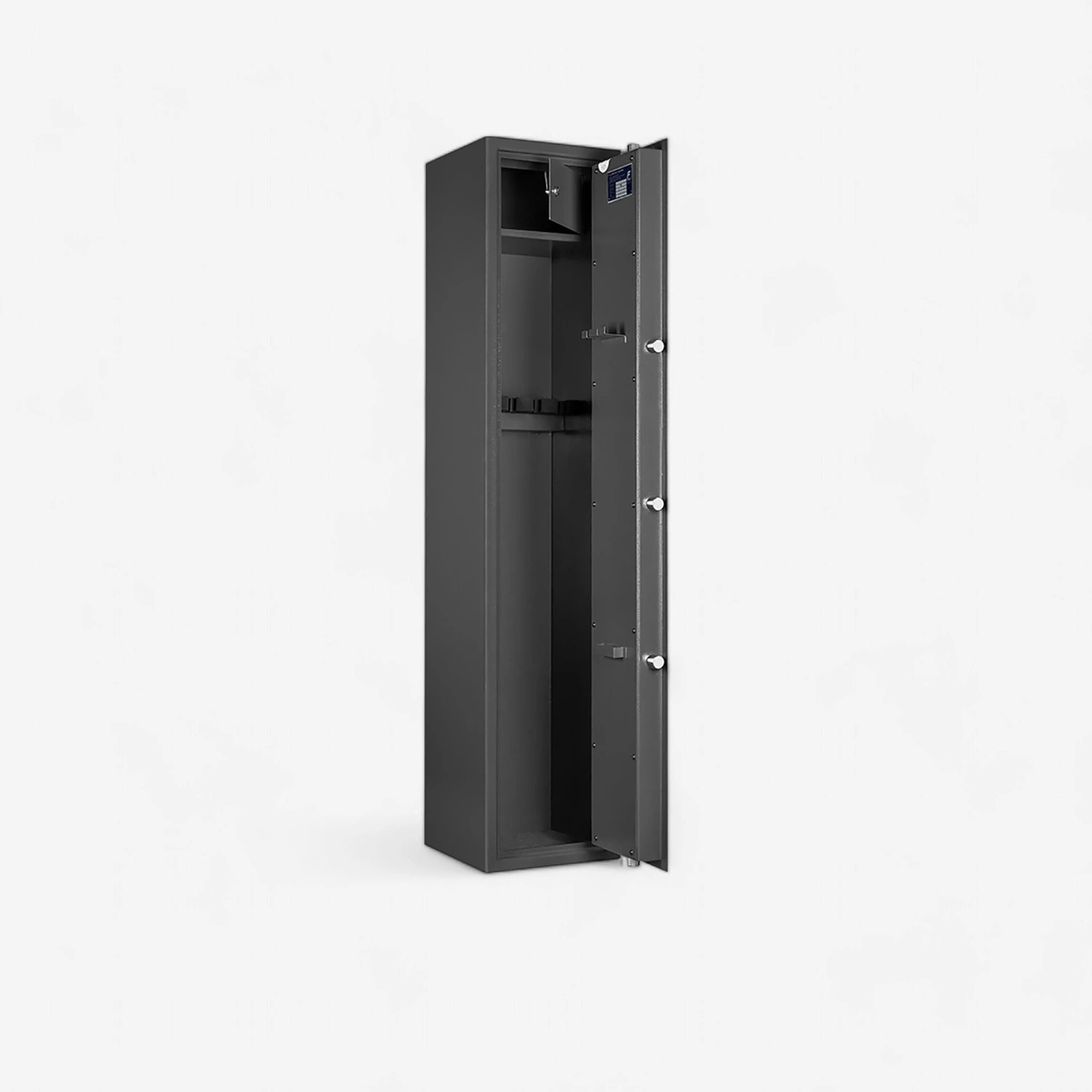 Designed to store 5 long pieces of equipment with or without sights, in total security.Standard and certified safe cabinet: in compliance with the European standard for burglary resistance (EN 14 450 S1).