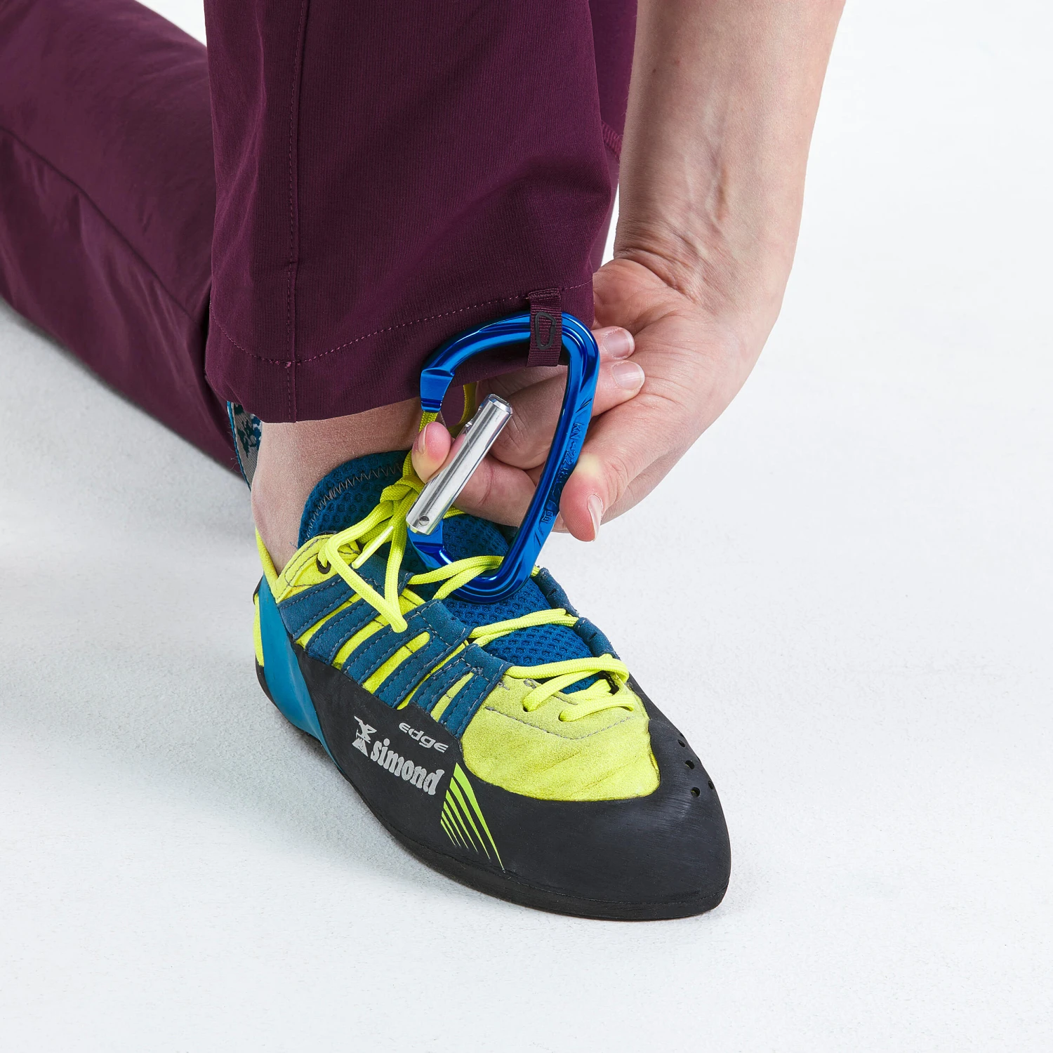 – Strap at the ankles so that you can attach your shoes with a carabiner to avoid losing them when abseiling down a descent