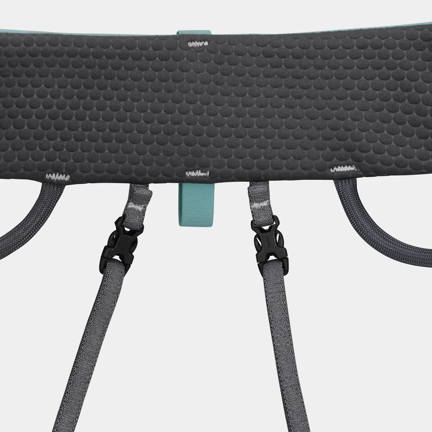Our designers developed this technical harness for comfortable climbing on the most vertical walls, on cliffs or multi-pitch or for mountaineering.Are you looking for a comfortable harness that’s both lightweight and compact? Its ergonomic belt, bonding technology and adjustable elasticated thighs respond perfectly to these needs!
