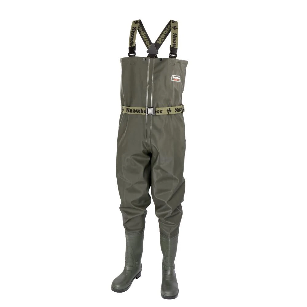 Snowbee Granite PVC Chest Waders, feature a Duraflex rear buckle, this is designed to hold the braces together and prevent them slipping off your shoulders, elasticated waist belt is also supplied.