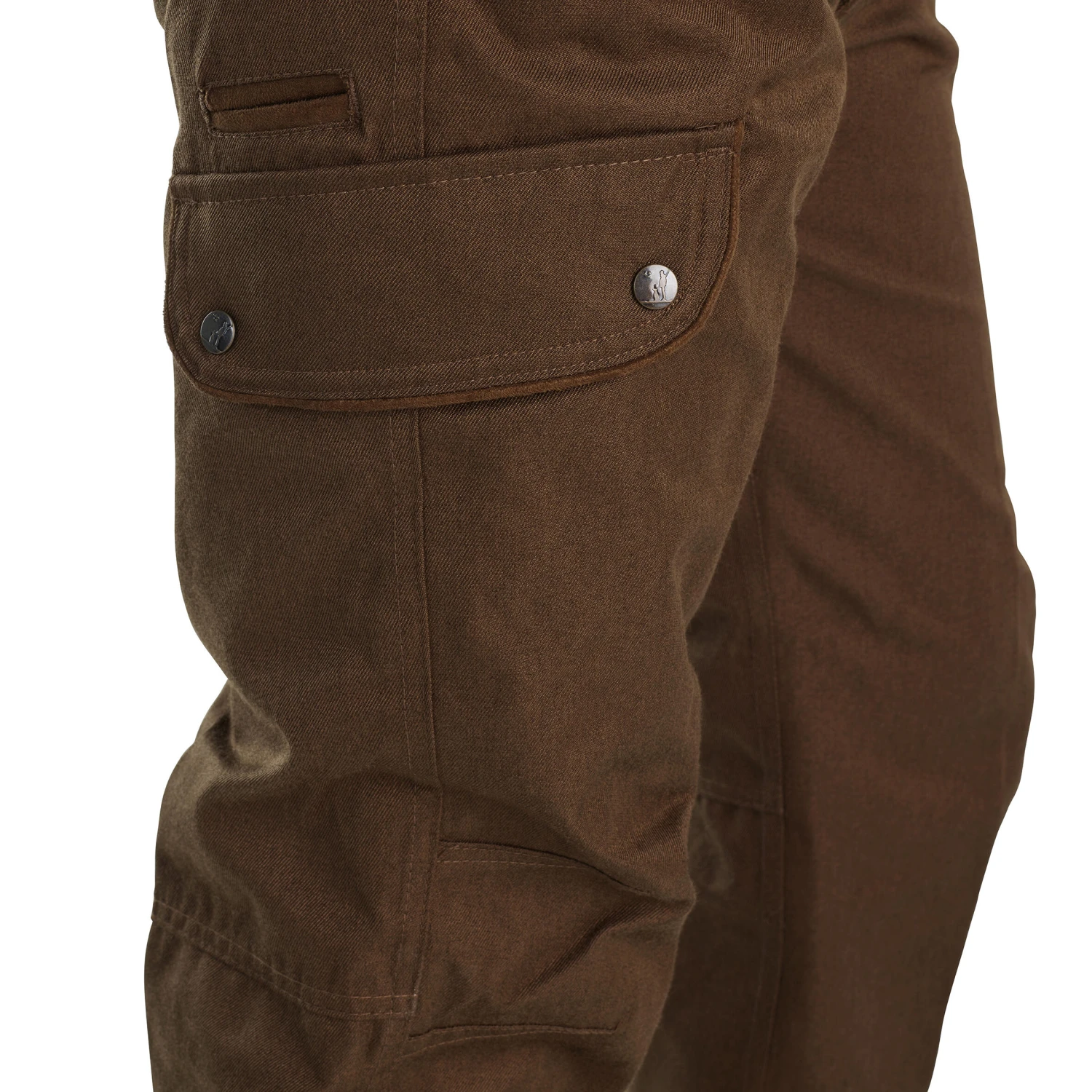 This versatile spindle includes 6 classic pockets and 1 knife pocket, an elasticated belt, durable reinforcements on the knees in RIPSTOP fabric and zipped openings at leg bottoms.