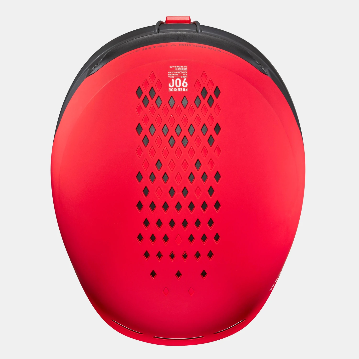 – Active: For use when skiing. The air enters under the cap, channels through the internal channels and the rear extraction grid. In this position, the top holes are closed.