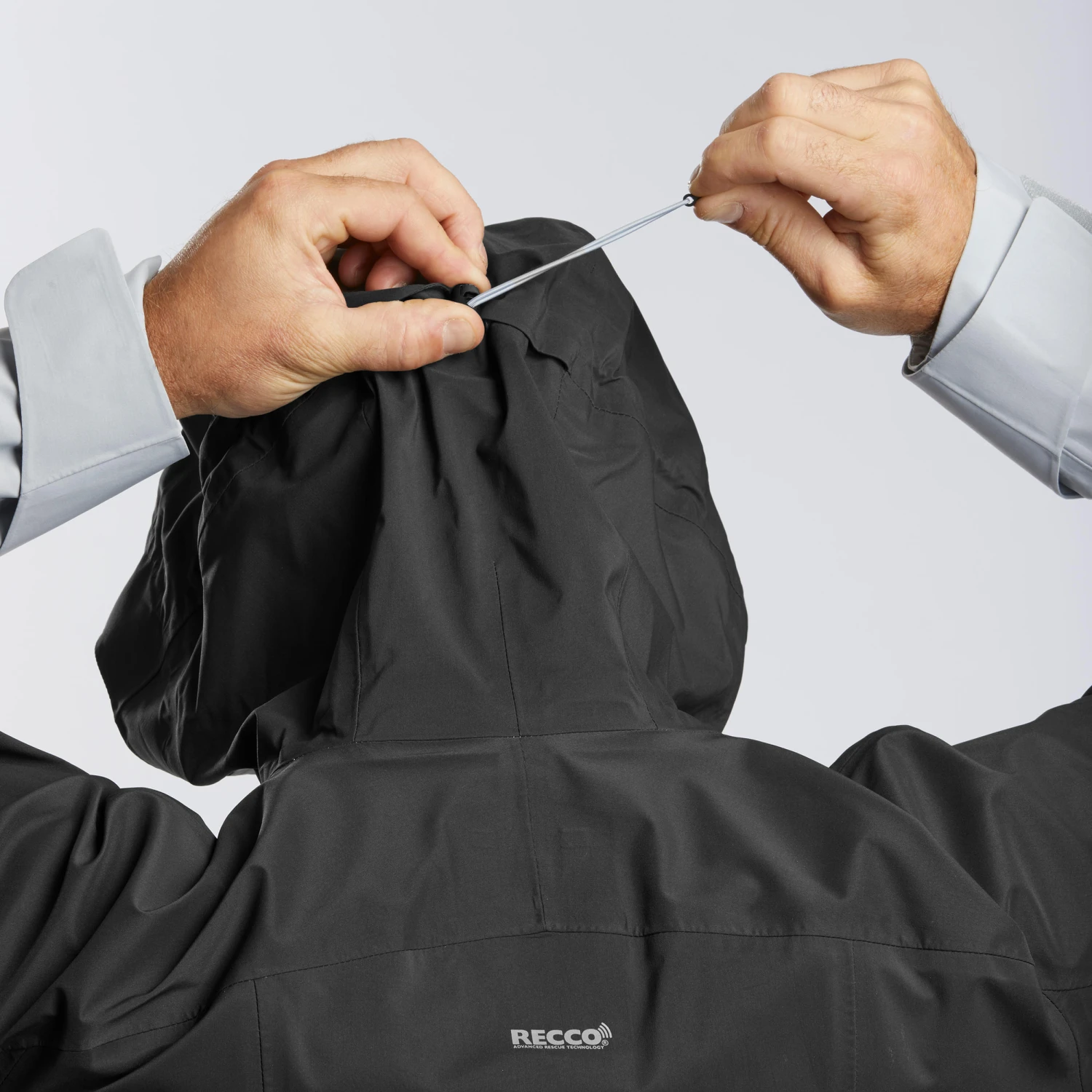 Waterproof jacket designed for ski touring in any weatherWhatever the weather, your jacket will protect you thanks to its waterproof qualities. Large hood that can be worn over a helmet. Removable snow skirt