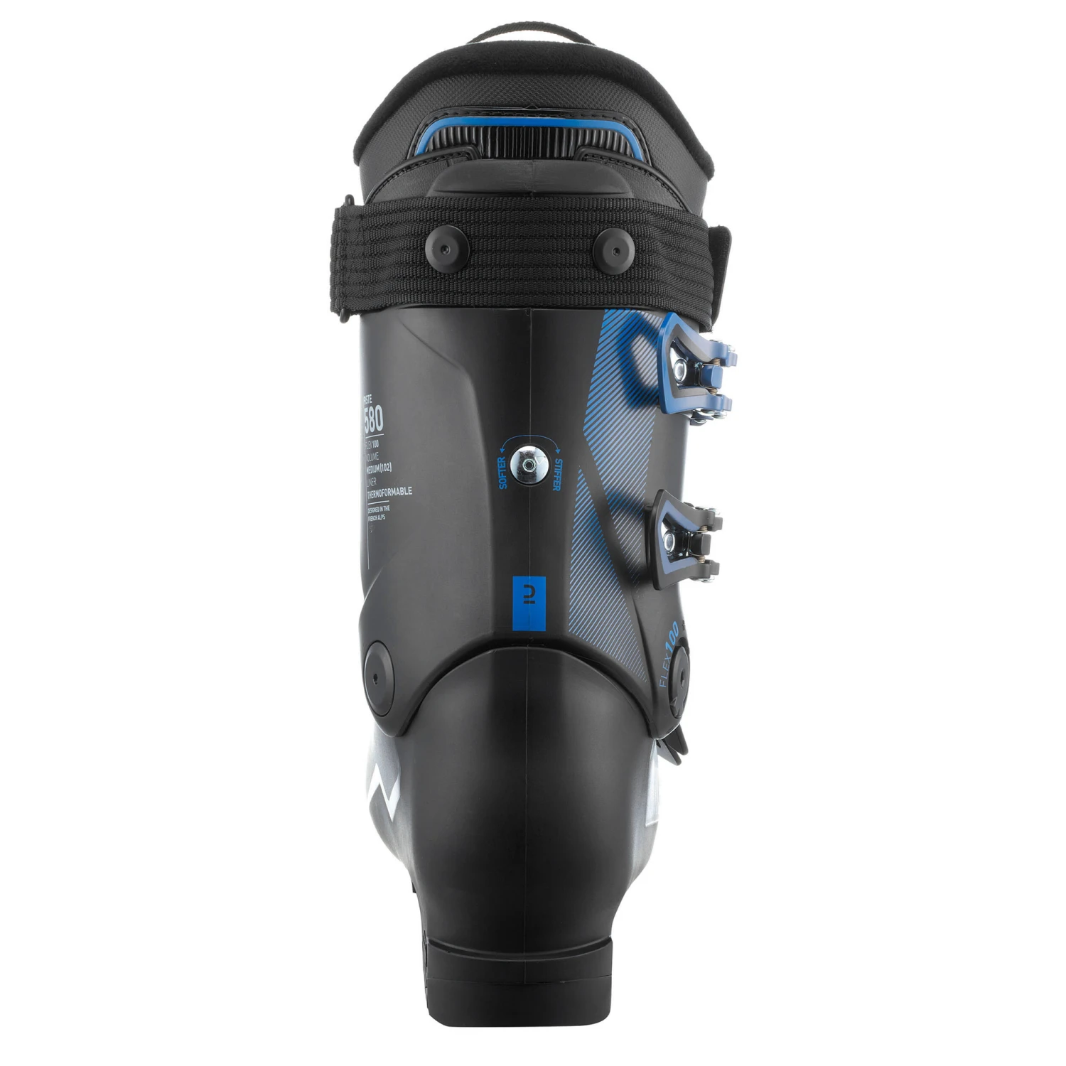 Our team developed this ski boot for experienced skiers looking for comfort and support, and who want to improve.With its adjustable Flex (+/- rigid), the 580 will give you all the comfort you need whether you are descending at a relaxed/sporty pace Its volume and construction provide comfort and precision.