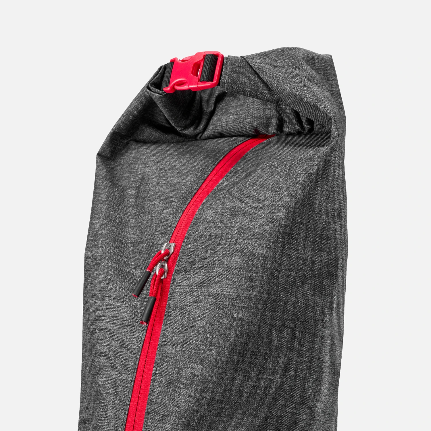 Adjust the length of the bag to the length of the skis by rolling the Roll Top system. Then clip the buckle and use this ring (which acts as a handle) to pull your bag.