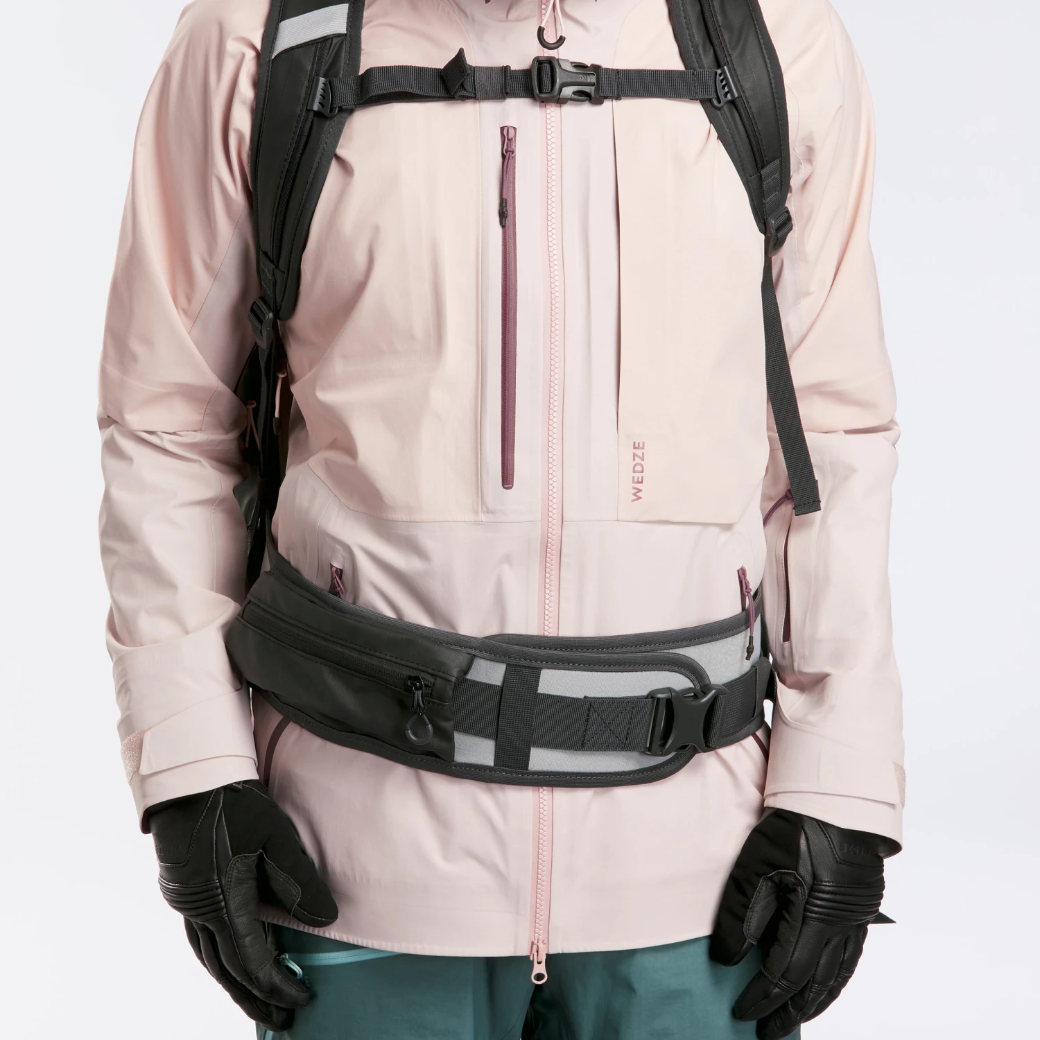 A wide neoprene waist strap to provide the comfort and support required to prevent movement of the bag when skiing. Lined with a wide strap to tighten more precisely.