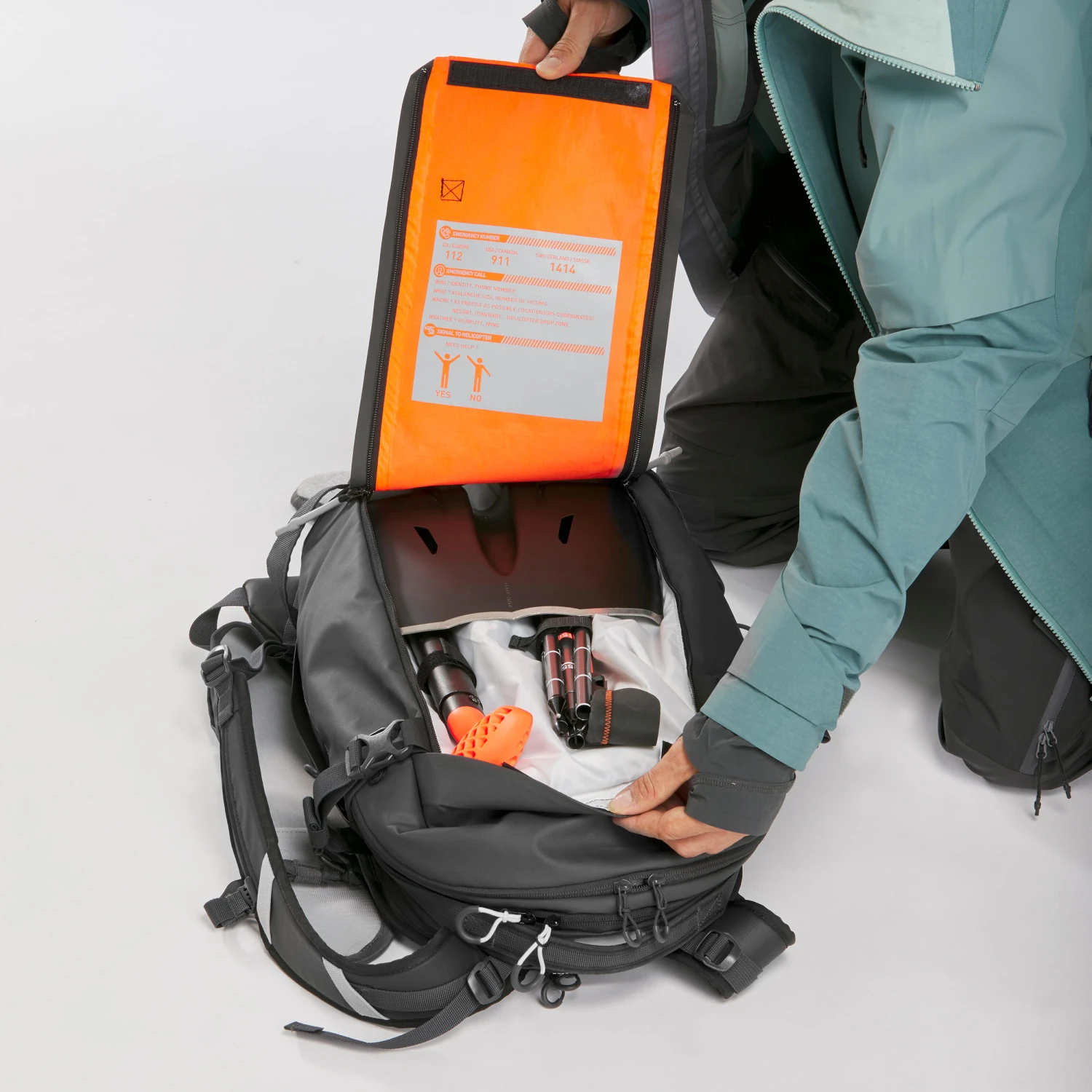 A secured pocket for the shovel and probe with quick ZIP opening.