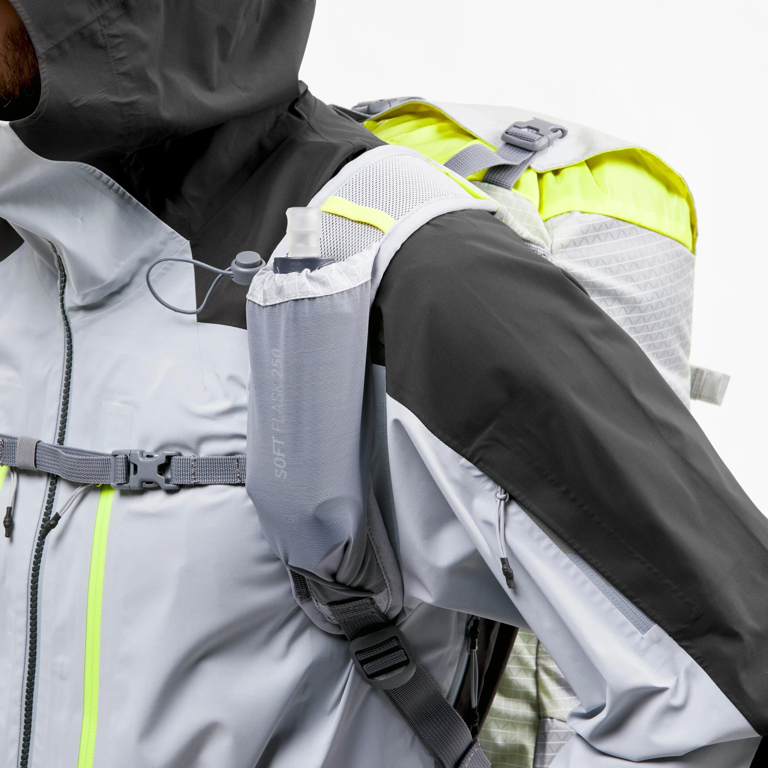 – A pocket to slide a 500mL water bottle on the left shoulder strap