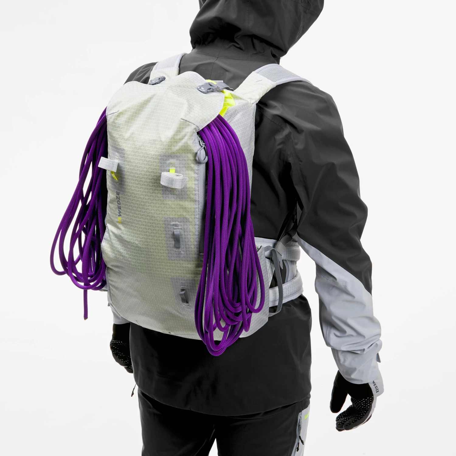 Option to carry a rope on the bag with the adjustable closure of the backpack hood.