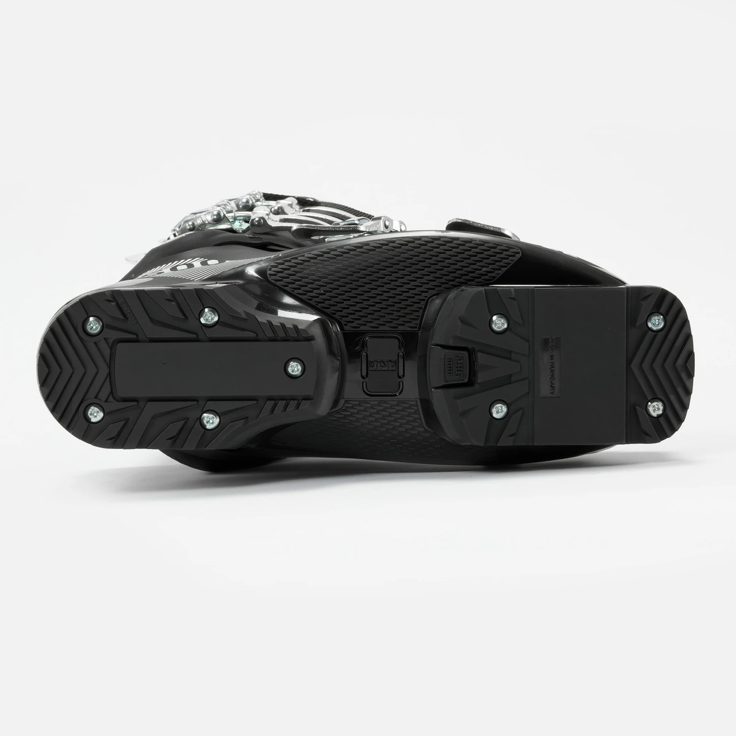 The 500 is designed for intermediate skiers looking for a simple yet effective boot with unbeatable value for money. Easy to slip on/off thanks to a connector on the top of the foot. The 4 micrometric aluminium buckles and a strap ensure effective tightening. Its generous volume (102 mm) and thick liner provide a very good combination of comfort and support. Fairly flexible (Flex 70) for good ski handling with tolerance.
