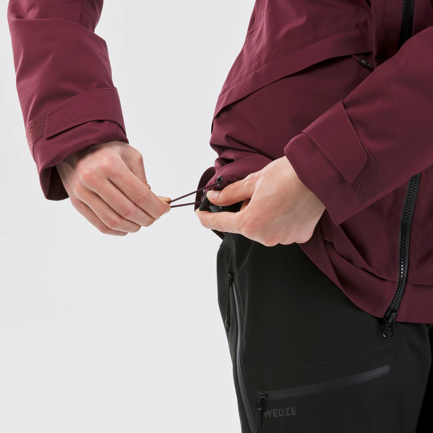 Tightening at the bottom of the jacket and snow skirt to also prevent air and snow from getting in.
