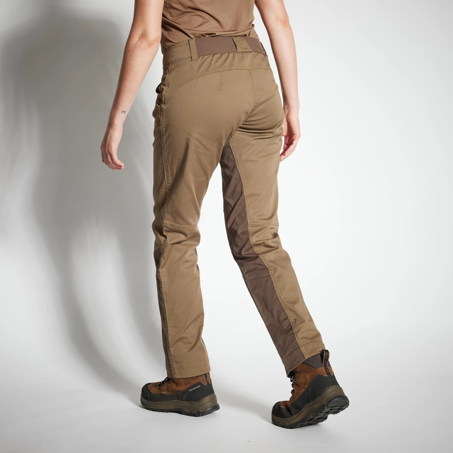 Ideal for wildlife observation in dry weather.These trousers are made from cotton elastane for comfort. The preformed knees ensure ease of movement when stepping over obstacles, and the high belt stays in place and protects your lower back.
