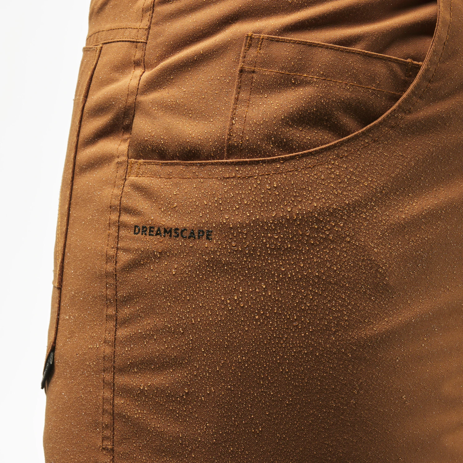 The water-repellent feature makes water run off the fabric without seeping in thanks to a treatment applied to its outer surface. The fabric does not soak up water and stays light and warm. This treatment must be renewed during the life of the product, after 2 to 3 washes on average, using the products available in our stores. All the waterproof trousers that we design for snowboarders are water-repellent.