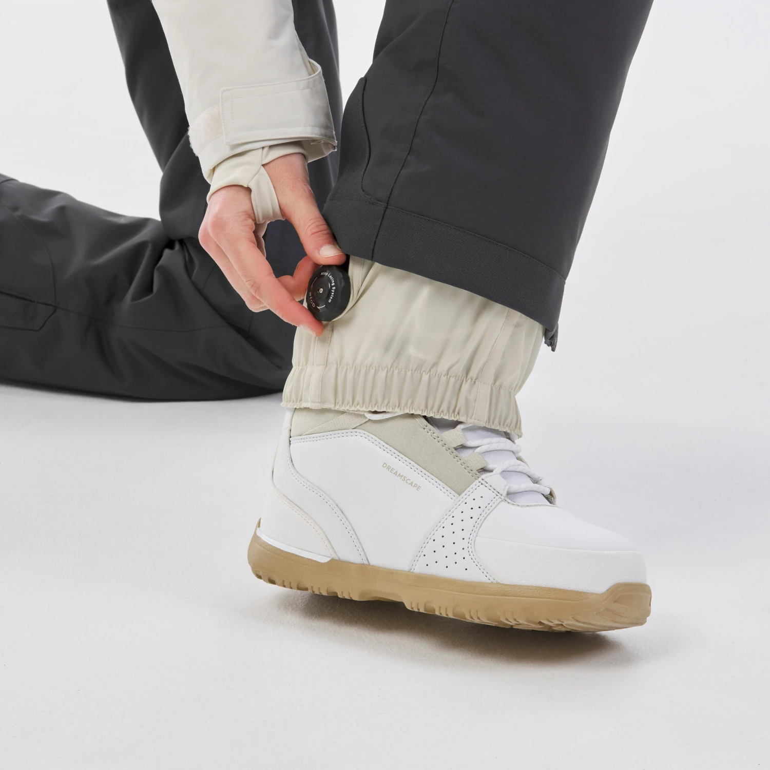 To withstand bad weather (rain, snow, wind, etc.), these women’s snowboard trousers have been designed with a waterproof component and assembly processes that keep the water out and reduce wind chill. We have spent a few days snowboarding and carried out tests over long periods, in all conditions, to validate the waterproofing of the product.